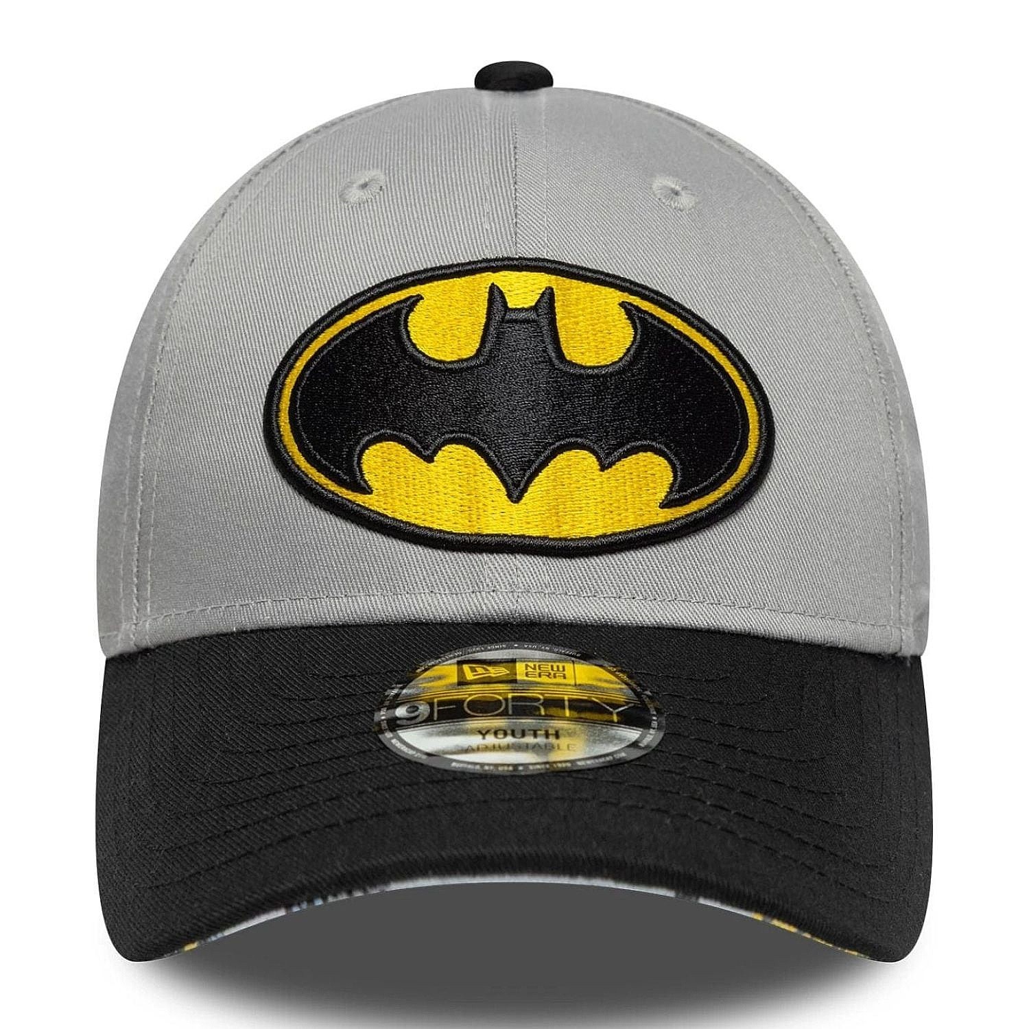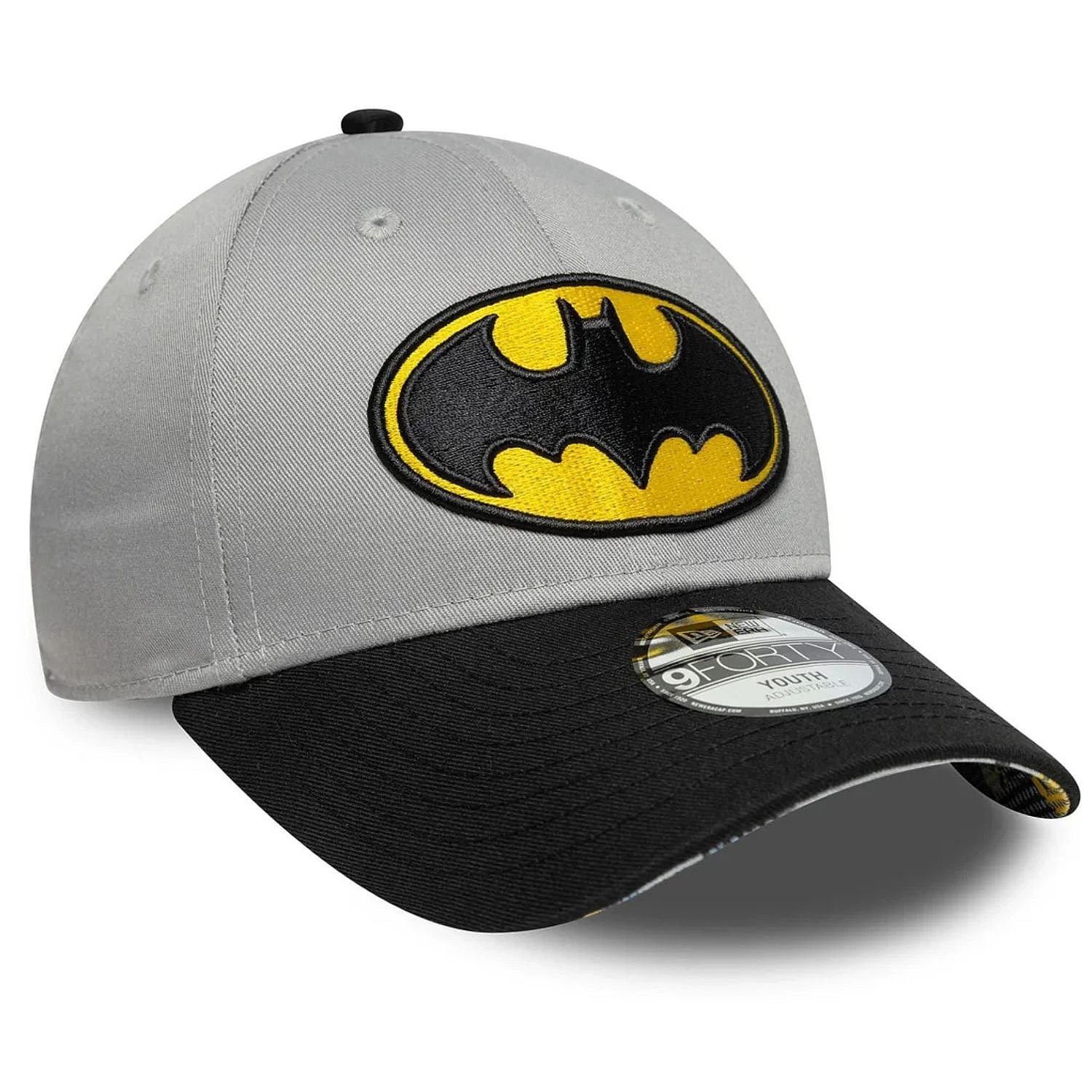 Casquette pour enfant New Era 9FO DC Warner Bros Batman Child * matière : 65 % polyester, 35 % coton * visière courbée * logo Batman sur le devant * drapeau New Era brodé sur le côté gauche * trous d'aération pour une meilleure évacuation de l'humidité