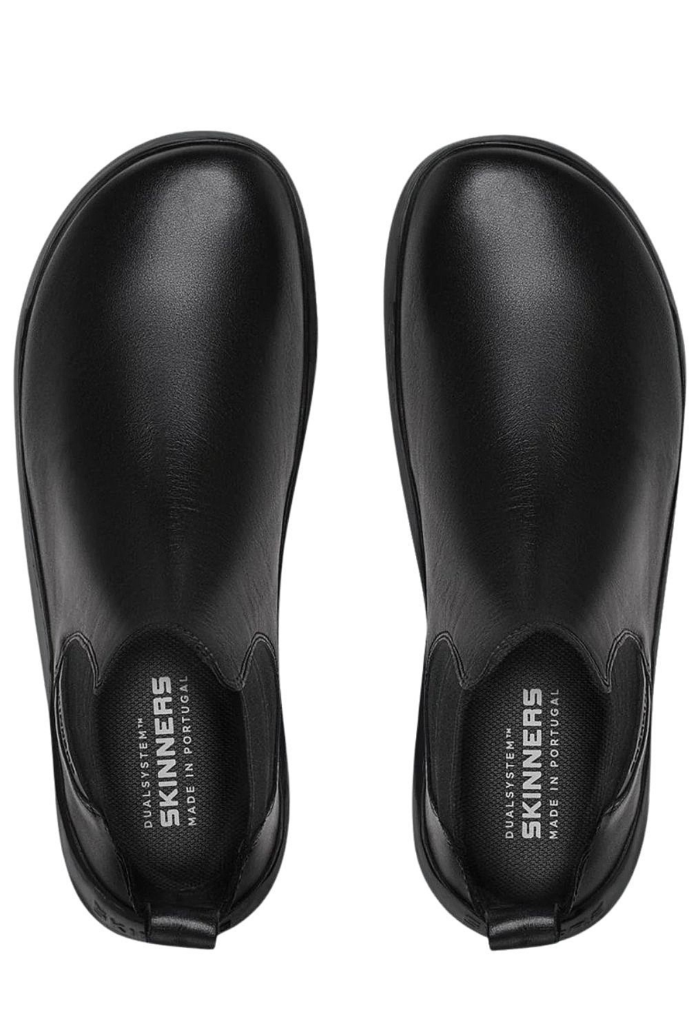 Bottines pieds nus Skinners Chelsea Wide - une coupe populaire de bottines pieds nus en cuir de veau lisse de première qualité convenant à l'automne ou au printemps. Facile à enfiler grâce à la conception à enfiler, grandes propriétés d'absorption et de thermorégulation grâce à la doublure en peau de porc. Bout large, semelle souple et sans dérapage. Les chaussures sont conçues en République tchèque et fabriquées au Portugal.