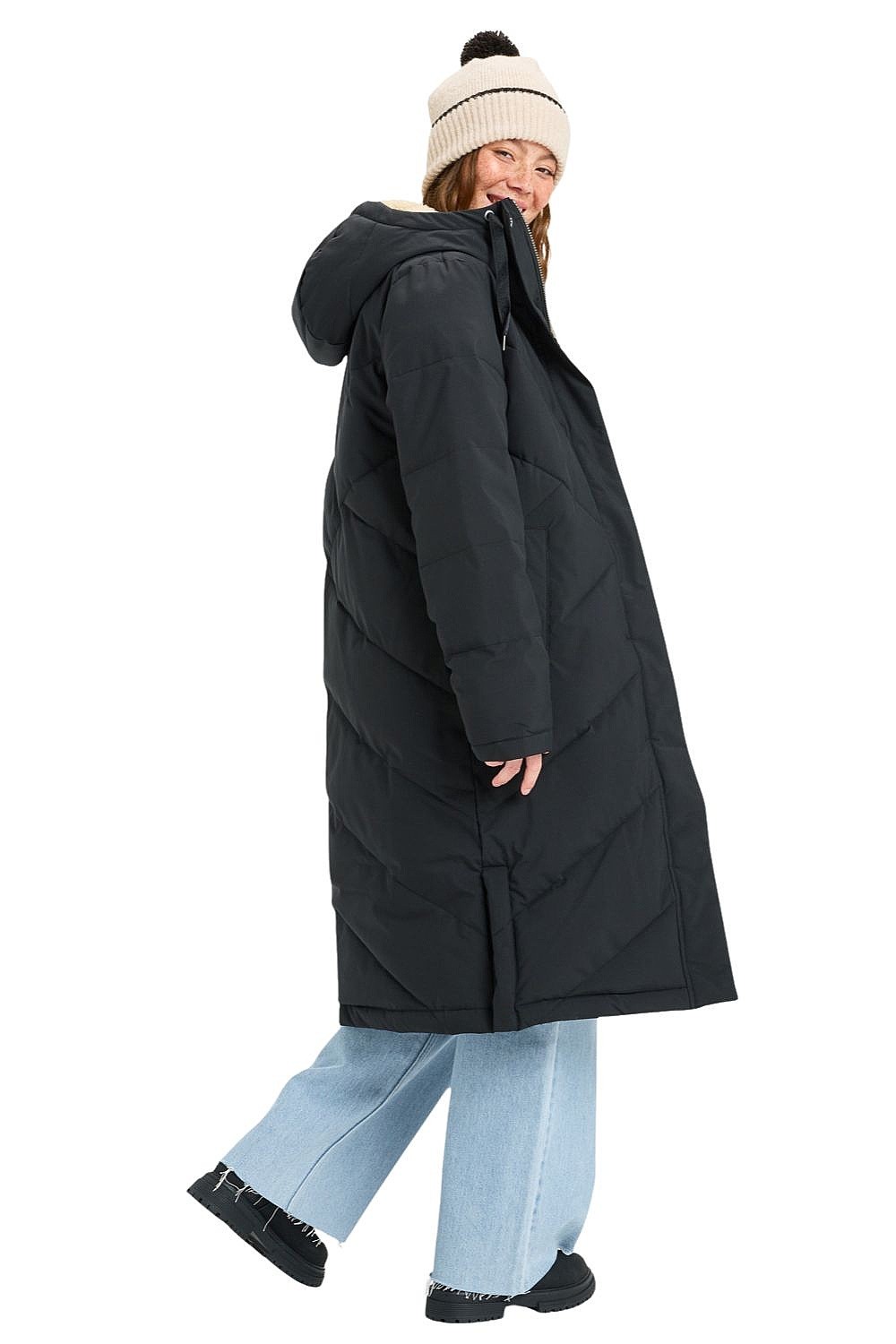 Manteau d'hiver Roxy Ellie pour femme - élégant manteau d'hiver extra-long avec isolation chaude en "faux duvet" et imperméabilité fiable. Chaud, doux et conçu pour le confort même les jours les plus froids, avec des matériaux durables et une coupe fuselée féminine.