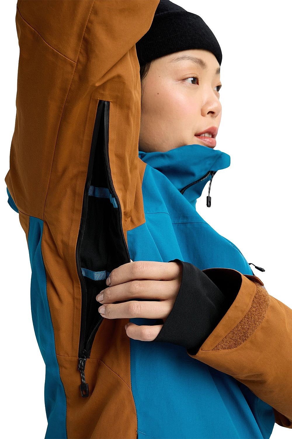 - Ventilation sous les bras recouverte de maille pour une régulation rapide de la température sans risque d'infiltration de neige.